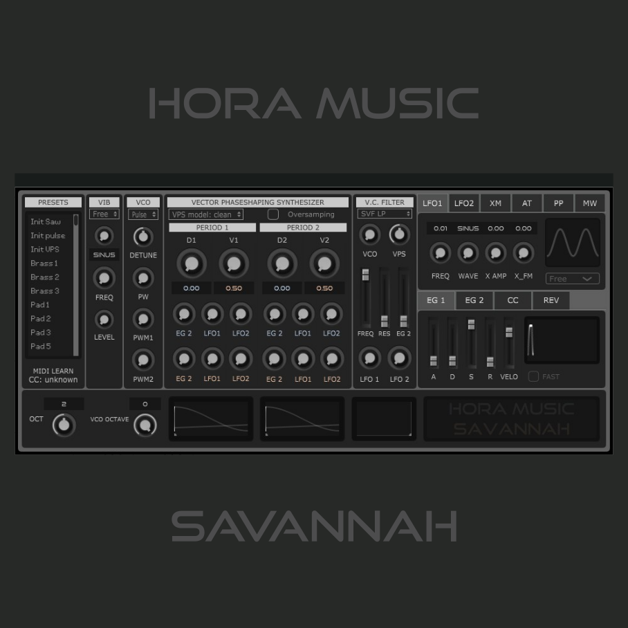 Savannah is a vector phaseshaping Vst plugin offering two inflection points controllable via their V and D coordinate point.